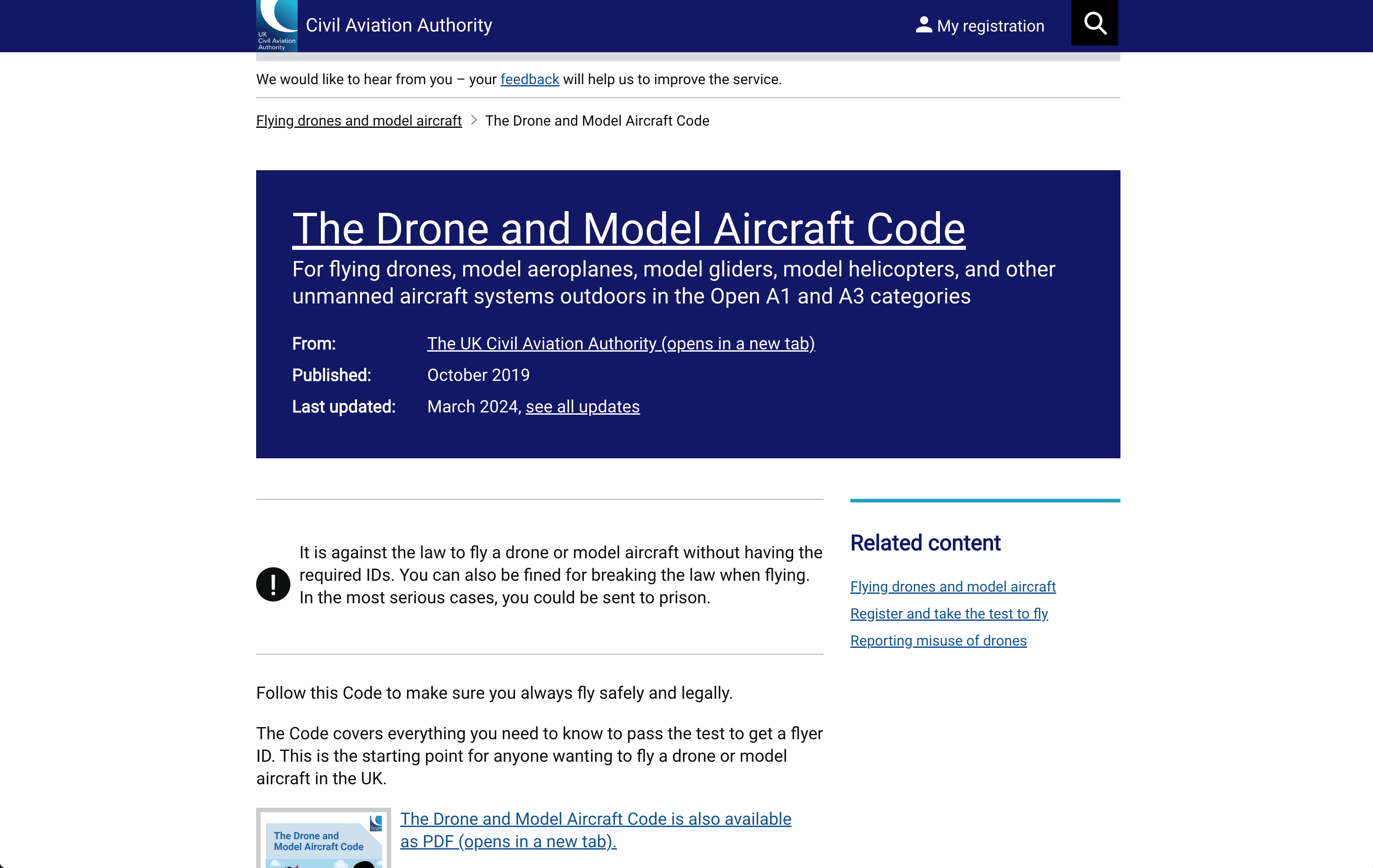 Everything you need to know is in our Civil Aviation Authority Drone and Model Aircraft Code