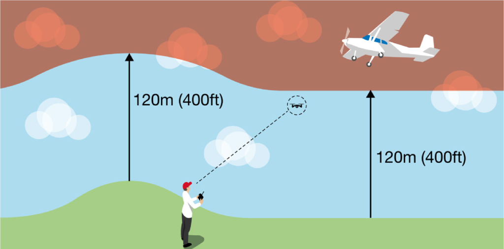 Never fly more than 120m, or 400ft, above the ground